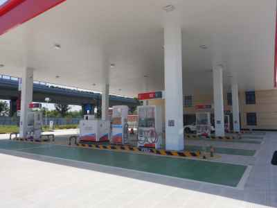 站區(qū)加油罩棚下設(shè)6座加油島(加油島上設(shè)置3臺三油品六槍潛油泵式稅控加油機和3臺雙油品四槍潛油泵式稅控加油機以及1臺尿素液加注機);埋地油罐區(qū)設(shè)4只埋地臥式SF雙層油罐(車道罐,設(shè)置在承重框架內(nèi),承重70t),其中2只50m³SF雙層復(fù)合汽油罐(分別儲存92#汽油和95#汽油),1只30m³SF雙層復(fù)合汽油罐(儲存98#汽油),1只40m³SF雙層復(fù)合柴油罐(儲存0#柴油),折算后油罐總?cè)莘e150m³(柴油罐容積折半計入),根據(jù)《汽車加油加氣加氫站技術(shù)標準》GB50156-2021規(guī)定的等級劃分,該加油站為二級加油站。充電區(qū)設(shè)置2個汽車快充充電樁(2個充電車位),根據(jù)《綜合功能服務(wù)站建設(shè)規(guī)范》DB33/T2036-2018規(guī)定的等級劃分,該站為二級綜合供能服務(wù)站。
