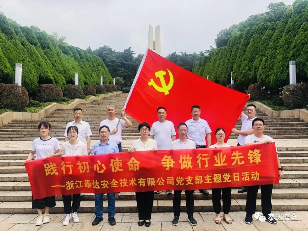 為隆重慶祝建黨100周年,不忘初心、牢記使命,6月29日,中共浙江泰達(dá)安全技術(shù)有限公司黨支部全體黨員赴浙江革命烈士紀(jì)念館,開展“學(xué)習(xí)百年黨史、緬懷革命先烈、重溫入黨誓詞”主題黨日活動(dòng)。 在巍巍革命烈士紀(jì)念塔前,伴隨著雄壯的國歌聲,全體黨員肅立,向革命烈士三鞠躬,黨支部向革命烈士敬獻(xiàn)花籃,并在支部書記陸蕾帶領(lǐng)下,重溫了入……